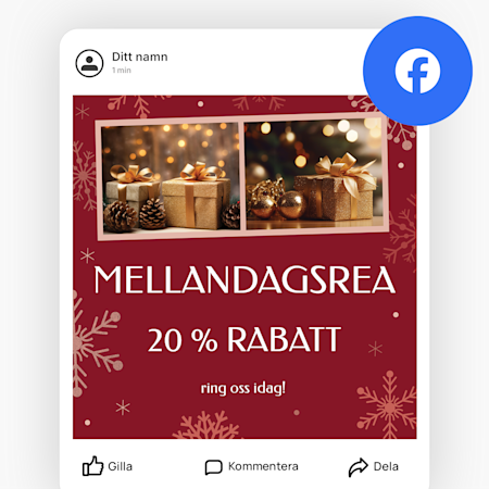 Öka tempot på din marknadsföring i sociala medier och få mer engagemang med våra snygga gratis mallar och grafik. Gör reklam för rean eller uppdaterade produkter, låt kunder berätta vad de tycker eller tipsa om nyheter i branschen. Vi har tusentals designer för alla slags tillfällen och du kan enkelt anpassa dem till ditt varumärke. Få fler likes, följare och delningar med våra mallar idag!