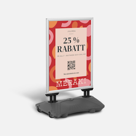 Vi har smarta A-ställ, fönsterdekaler med jultema, flaggor, juliga vinylbanderoller och plastskyltar som kan vara till hjälp för marknadsföringen utanför din butik. När du väl har lockat in kunderna kan du fortsätta att övertyga dem med klassiska vinylbanderoller eller testa roll-ups, julaffischer, bordsskyltar med reklam eller bordsryttare. Och glöm inte att ta en titt på våra förpackningar och emballage med jultema med allt för paketinslagning som presentpapper, silkespapper, askar och mycket mer.