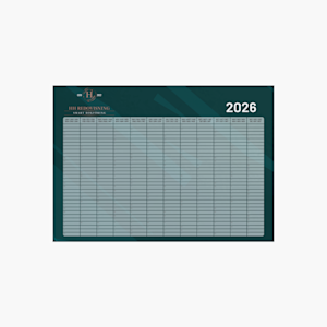 Dags att skapa en egen väggkalender årsplan? Välj bara storlek, typ av rutnät och ladda upp din logotyp. Vi tar hand om resten så du behöver bara sätta upp den och få ordning på det som ska göras.