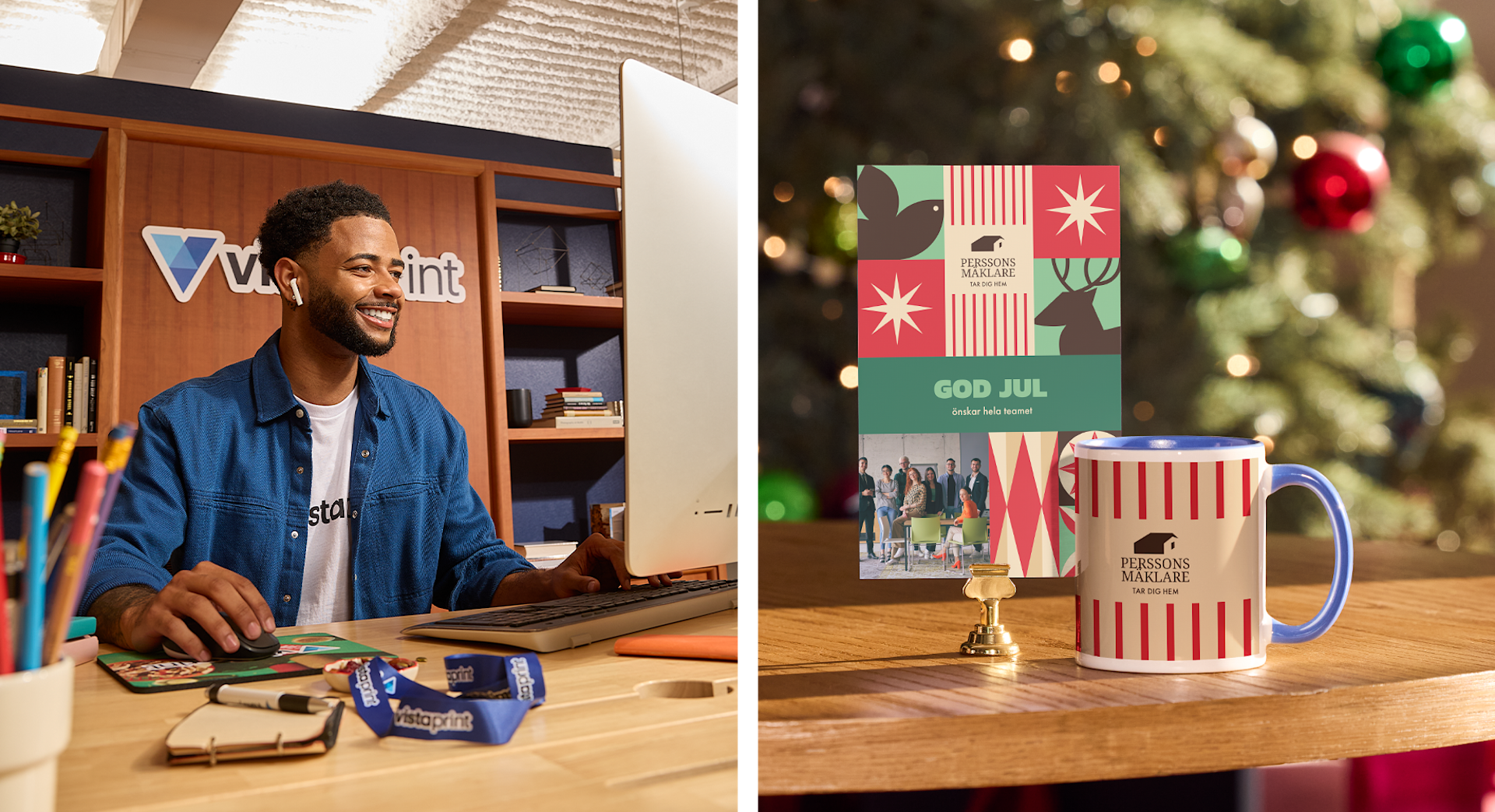 Ja, det stämmer, de bästa julkorten och julklapparna är dem du har gjort själv. Och med VistaPrints designhjälp har det aldrig varit enklare att skapa något unikt. Oavsett om du vill ha julkortsrekommendationer eller behöver hjälp med anpassningen, finns våra designtjänster för julen här för att hjälpa dig med såväl stora som små uppgifter. Vi kan svara på designfrågor, justera våra produktmallar efter dina önskemål, korrekturläsa dina kort och mycket mer. Tänk bara på oss som jourhavande tomtenissar (det är bara att ringa eller chatta med oss). Och det bästa? Vi gör det gratis.