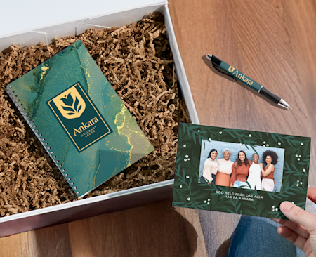 Ja, det stämmer, de bästa julkorten och julklapparna är dem du har gjort själv. Och med VistaPrints designhjälp har det aldrig varit enklare att skapa något unikt. Oavsett om du vill ha julkortsrekommendationer eller behöver hjälp med anpassningen, finns våra designtjänster för julen här för att hjälpa dig med såväl stora som små uppgifter. Vi kan svara på designfrågor, justera våra produktmallar efter dina önskemål, korrekturläsa dina kort och mycket mer. Tänk bara på oss som jourhavande tomtenissar (det är bara att ringa eller chatta med oss). Och det bästa? Vi gör det gratis.