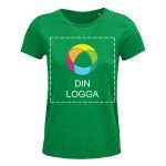 Letar du efter mjuka och sköna T-shirtar till personalen? Dessa kan specialdesignas och är tillverkade av semi-kammad ekologisk bomull, som är perfekt i vardagskläder. De gör det enkelt att visa upp din logotyp tryckt på T-shirtens framsida. Den snäva passformen skapar en smickrande silhuett och en feminin look. Den runda halsringningen gör dessa T-shirtar till ett mångsidigt basplagg. De kan kombineras med en kjol för en mer uppklädd stil eller med jeans för en ledigare look. Och de går utmärkt att bära under en kavaj eller jacka – perfekt i omväxlande väder. Redo att börja designa din nästa marknadsföring? Lägg till din logga, text eller andra bilder med vår intuitiva studio. Och om du behöver hjälp på vägen kan du alltid kontakta våra designexperter.
