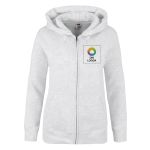 Blandningen av bomull och polyester gör tröjan både mjuk och hållbar. Den är designad för att vara skön att ha på sig såväl som för att ge en smickrande passform och har insvängda sidsömmar som förstärker den feminina silhuetten. Dessutom har huvan dubbelt tyg, vilket gör att den värmer bättre, och den har en enfärgad dragsko så att den kan justeras. Ett band i singeljersey på kragens insida bidrar till den övergripande komforten, medan två framfickor är praktiska och smidiga. Den är enkel att anpassa. Lägg bara till din logotyp, text eller information med hjälp av vår intuitiva studio. Behöver du hjälp? Våra designexperter finns här för att hjälpa dig att förverkliga dina idéer.