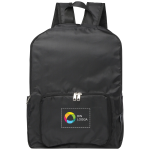 Bär dina nödvändigheter var som helst och lägg till din logotyp på denna kompakta fällbara ryggsäck.