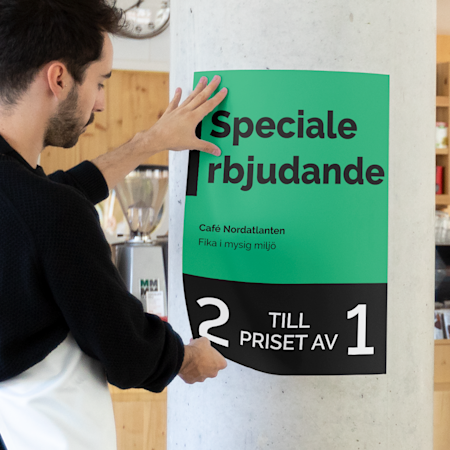 Ja, oavsett om du föredrar kaxiga tryck eller minimalistisk design har vi massor av mallar som passar dig. När du valt typ av klistermärke och form kan du titta igenom vårt galleri med anpassningsbara mallar. Du kan också filtrera mallar efter bransch, stil och färg. Sedan kan du anpassa klistermärket med exempelvis text, bilder eller logotyp.