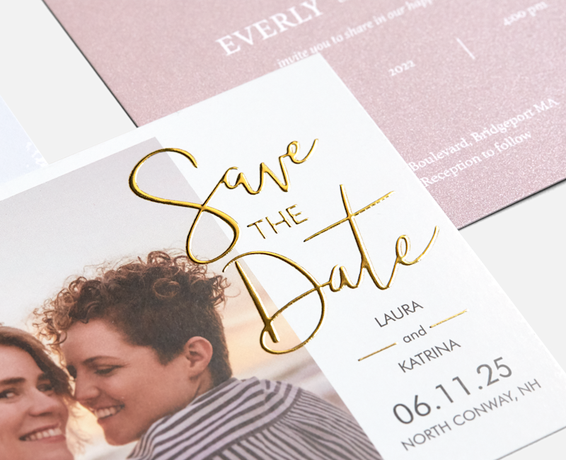 Vare sig ni precis börjat med bröllopsplaneringen eller är klara att beställa inbjudningskorten på nätet kan vår bröllopskollektion göra det enkelt att vara 100 % er själva. Våra bröllopskortsdesigner och -dekorationer tar avstamp i de populäraste trenderna och temana, så att ni enkelt kan hitta något som känns fräscht och passar er stil (och jo, även er budget). I vår designstudio kan ni gå ”all in” i er stil eftersom våra mallar kan anpassas med de val ni gör när det gäller lyxiga detaljer – tänk vackra papper, glansiga folietryck och drömlika färger.