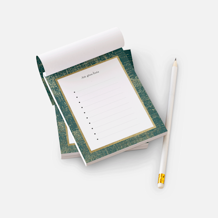 På VistaPrint kan vi hjälpa dig att skapa matchande brevpapper som är unikt och sticker ut. Du kan få en design – ett monogram, en logotyp eller kanske ett kul mönster – att sätta på kontorsmaterial och brevpapper som du kan vara stolt över. Vi kan hjälpa dig med allt från matchande anteckningsblock till anteckningsböcker med spiralbindning, dagböcker med mera.
