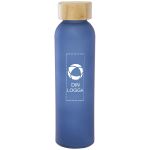 Släck törsten när du är på språng med den här anpassningsbara glasflaskan. Har en matt frostad yta och lock i bambu, levereras i en presentask.