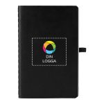 Visa upp ditt varumärke med en anteckningsbok med mjuk pärm som ger en behaglig skrivupplevelse och håller ordning på dina idéer med ett elastiskt band och en pennögla. Oavsett om du skriver mötesanteckningar eller skissar på kreativa idéer är denna linjerade anteckningsbok en perfekt plats för din dagliga inspiration. Enkel att anpassa. Lägg till din logotyp, text eller information med hjälp av vår intuitiva studio. Behöver du hjälp? Våra designexperter finns här för att hjälpa dig att förverkliga dina idéer.