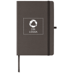 Ta dina anteckningar till nya höjder med en anteckningsbok med ett distinkt texturerat omslag som sticker ut från de vanliga alternativen. Fånga dina tankar, mötesanteckningar eller kreativa idéer på släta elfenbensvita sidor med denna eleganta följeslagare för både yrkesverksamma och studenter. Enkel att anpassa. Lägg till din logotyp, text eller information med hjälp av vår intuitiva studio. Behöver du hjälp? Våra designexperter finns här för att hjälpa dig att förverkliga dina idéer.