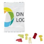 Förgyll tillvaron med ett gott val – gelégodis med naturligt fruktinnehåll. Dessa glansiga, laminerade foliepåsar är perfekta i varumärkesprofilering vid evenemang eller som trevliga reklamgåvor. Enkel att anpassa. Lägg till din logotyp, text eller information med hjälp av vår intuitiva studio. Behöver du hjälp? Våra designexperter finns här för att hjälpa dig att förverkliga dina idéer.