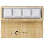 Främja ditt varumärke med detta anpassningsbart mobilställ som håller din enhet säker, medan de inbyggda fidget-tangenterna hjälper dig att förbli avslappnad. Tillverkad av trä och bambu med en stabil bas.