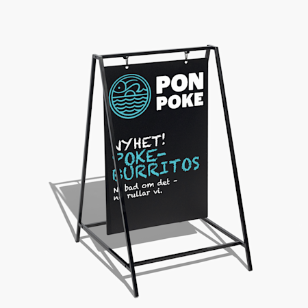 Om du riskerar starka vindar och regn rekommenderar vi våra gatupratare för bästa stabilitet. De kan fyllas med upp till 17 l sand eller vatten och klarar även blåsiga miljöer, upp till 25 m/s, och ramen i stål och aluminium ger utmärkt skydd till skyltarna.