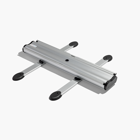 Vi rekommenderar att du använder båda händer när du ska dra upp bannern från kassetten när du monterar den, och likaså när du ska ta ner den. När du ska dra upp banderollen ur stället är det bra att göra det långsamt för att undvika att trycket på banderollen slits. När du ska ta ner din roll-up ska du inte låta den falla ner. Guida den försiktigt ner i kassetten, så att den dras in mjukt och korrekt.