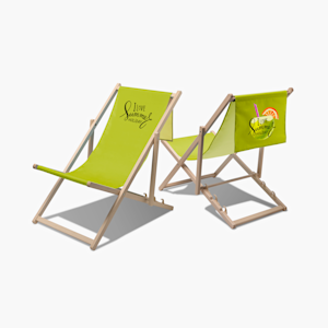 Det är otroligt enkelt att designa egna solstolar. Välj en anpassningsbar mall eller ladda upp en egen design, lägg till text eller bilder för företaget så tar vi hand om resten. Solstolarna levereras färdiga att använda – fäll upp dem och ställ ut dem till gäster eller kunder.