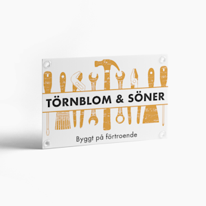 Börja med att tänka igenom var du ska använda dem, innan du börjar designa dem. Sedan kan du välja storlek och utforska alla våra helt anpassningsbara designmallar för olika branscher. Lägg till dina uppgifter – företagsnamn, webbadress med mera så tar vi hand om resten. Dina snygga skyltar levereras färdiga att börja dra till sig blickarna.