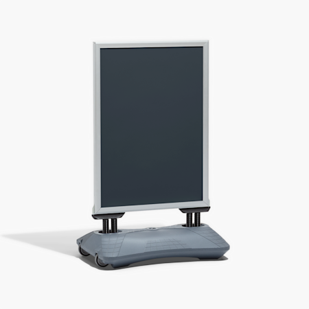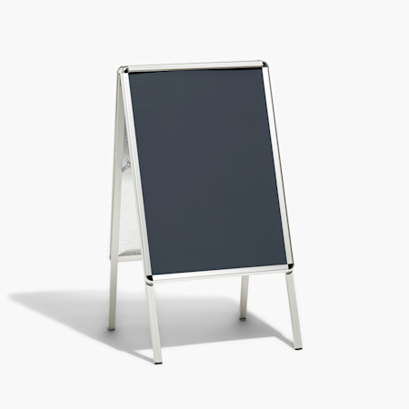 Alla våra affischer, ramar och andra tillbehör säljs separat. De enda undantagen är två av våra gatupratare; våra A-ställ och våra gatupratare med bas som fylls med sand eller vatten – de levereras med två A1-affischer.