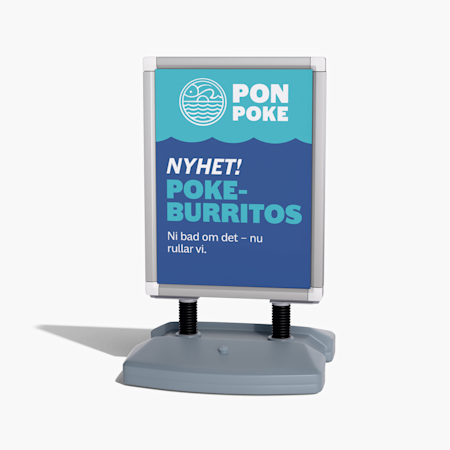 När vädrets makter är lite mer utmanande rekommenderar vi att du väljer våra gatupratare med vattenfylld bas, för bästa stabilitet. De är framtagna för att klara väder och vind och kan fyllas med sand eller vatten. Obs! De klarar även starka vindar (upp till 25 m/s), så du får verkligen en stabil och slitstark skylt.