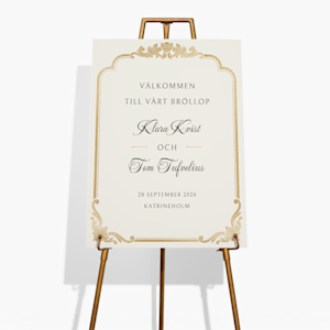 A3 är var standardstorlek och passar bra till välkomstskyltar i entrén till evenemang. Stora storlekar som A2, A1 och A0 passar bra till skyltar med bordsplacering där gästerna behöver kunna läsa namn och bordsplacering på håll. Mindre varianter passar bra när man ska visa vägen till ceremonin, mottagningen eller andra ställen.