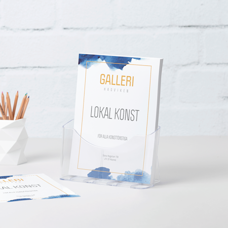 Håll flyers, vykort eller broschyrer smidigt uppställda med våra praktiska broschyrställ. Vi erbjuder två olika stilar för olika behov. För varumärkesprofilerade displayer kan du välja anpassningsbara pappställ i storlek A4, A5 eller A6. De har ett praktiskt fack framtill och logotyptryck som tillval. Om du vill ha en enklare men ändå funktionell lösning finns våra färdiga plastställ gjorda i klart, slitstarkt material som håller innehållet fullt synligt utan distraktioner.