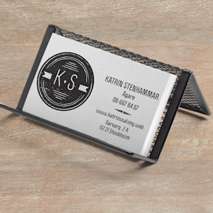 Ha dina visitkort nära till hands med en hållare på skrivbordet. Mer information