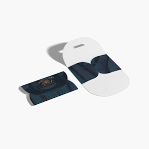 Korthållaren tillverkas av stadigt matt papper 380 g/m², så den är lätt men ändå stabil. Den håller formen och den släta vita finishen blir ett perfekt underlag för ditt varumärke. Välj mellan två klassiska storlekar (8,5 x 5,5 cm och A6) och orienteringar för att hitta den perfekta passformen för dina visitkort.Kvalitet som går smidigt att beställa